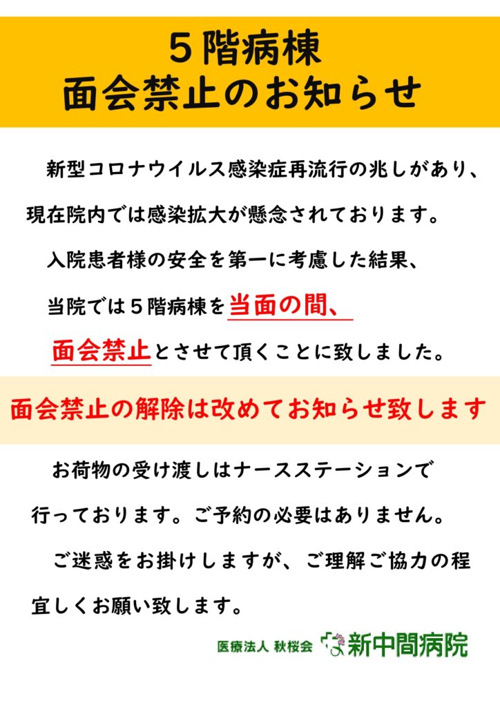 5階病棟 面会禁止のお知らせ