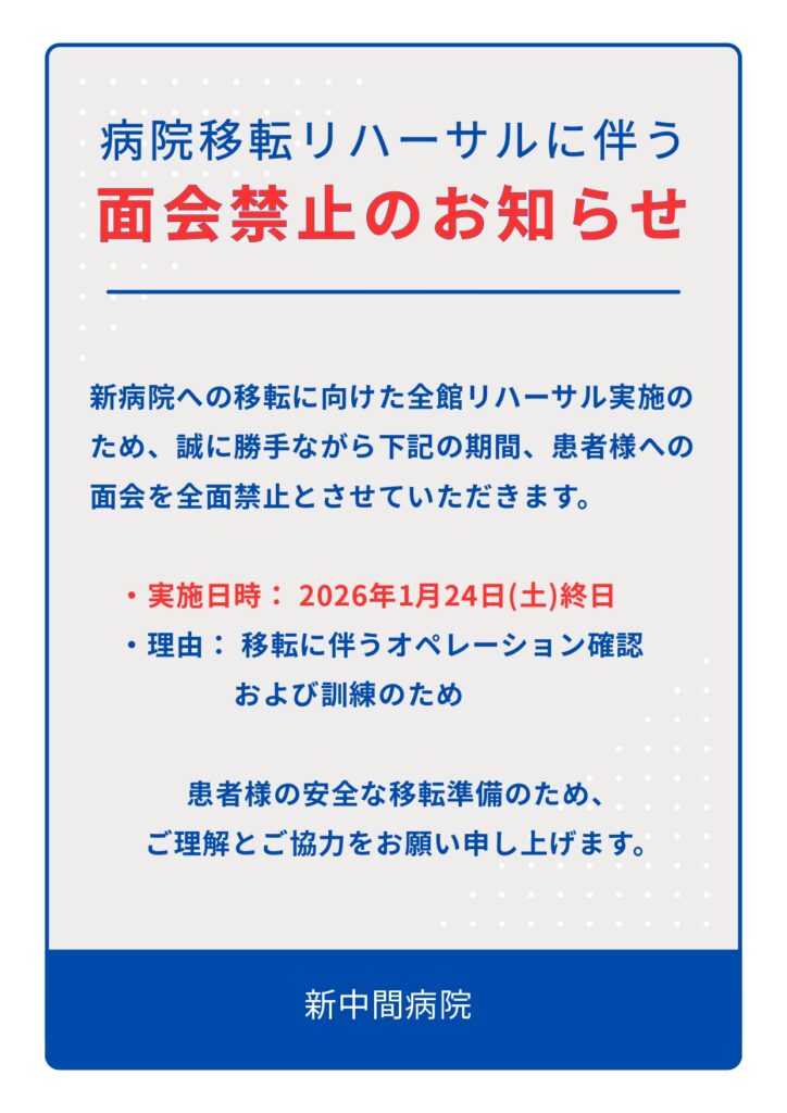 病院移転リハーサルに伴う面会禁止のお知らせ